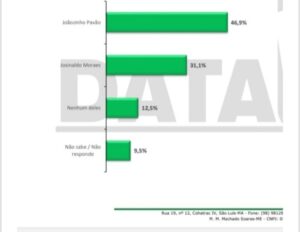 Em outro quadro, com apenas dois nomes aparecendo na futura disputa, Joãozinho Pavão obteve 46,9% da preferência contra 31,1% de Josinaldo Moraes.