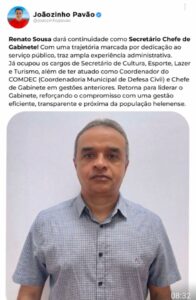 Faltando três dias para ser empossado Prefeito eleito de Santa Helena-MA, Joãozinho Pavão (MDB-15) anuncia, mais quatro integrantes para secretariado.