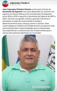 *Joãozinho Peixoto, Secretário de Esporte, esse tem nome e tem história