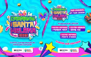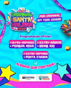 O melhor pré-carnaval de Santa Helena já tem data marcada! Dia 16, 22 e 23 de fevereiro, a cidade vai entrar no clima da folia com muita música, animação e diversão! 🎊✨