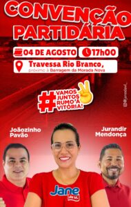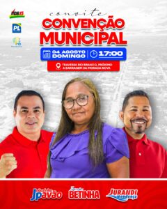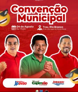 A super Convenção será realizada no dia 04 (Domingo), a partir das 17 horas, na Travessa Rio Branco, próximo a Barragem da Morada Nova.