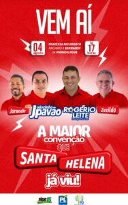 A expectativa é grande para a super Convenção em Santa Helena, onde será oficializada a chapa Joãozinho Pavão e Jurandi Mendonça para Prefeitura.